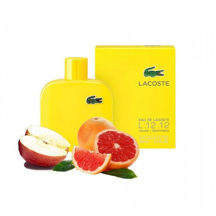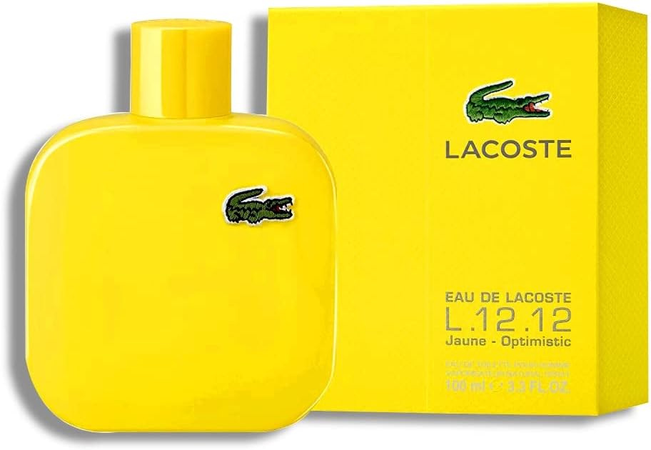 Eau de Lacoste L.12.12 Yellow (Jaune) de Lacoste Fragrances es una fragancia de la familia olfativa Aromática Frutal para Hombres. El nuevo lanzamiento de Lacoste y su colección L.12.12 está inspirado en el polo amarillo. La "L" significa Lacoste, el número 1 simboliza el material "Petit Piqué" utilizado, el 2 representa las mangas cortas y el 12 es el número de prototipos realizados antes del producto final. Eau de Lacoste L.12.12 Yellow-Jaune es una fragancia que desata optimismo, alegría y energía positiva.