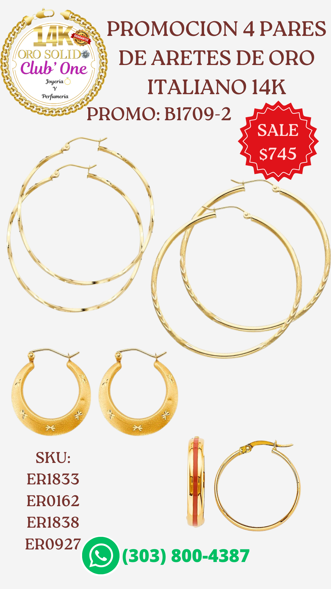 Compra Aretes de Oro Italiano 14K 4x1 en Promoción B17092