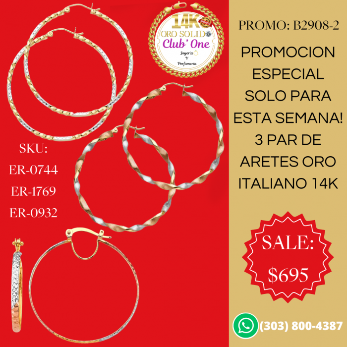 Compra Aretes de Oro Italiano 14K con Promoción 3x1 B29082