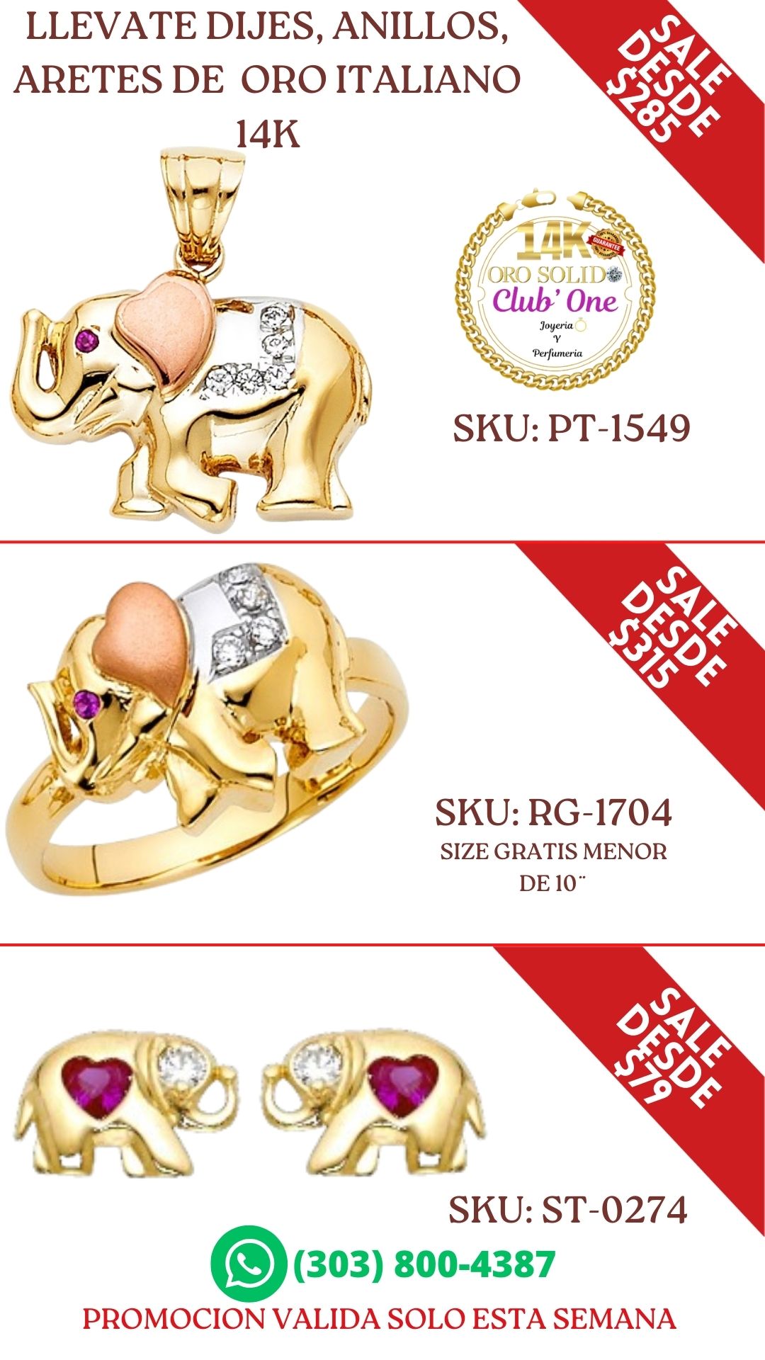 Compra Dijes Anillos y Aretes de Oro Italiano 14K en Oferta B24013