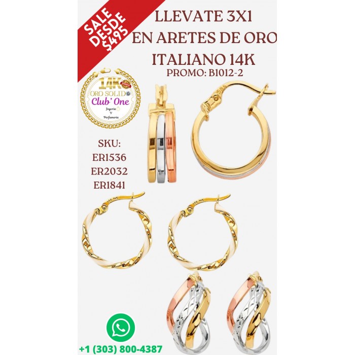Descuentos Únicos en Aretes de Oro Italiano 14K B10122