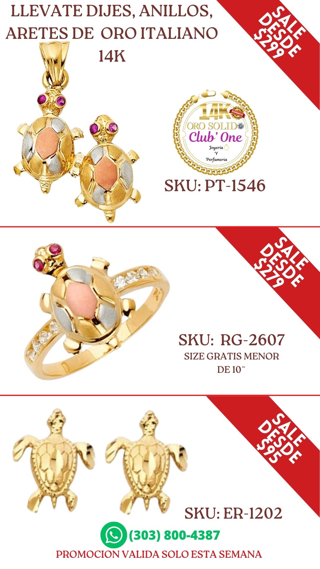 Dijes Anillos y Aretes de Oro Italiano 14K: Promoción Exclusiva B24014