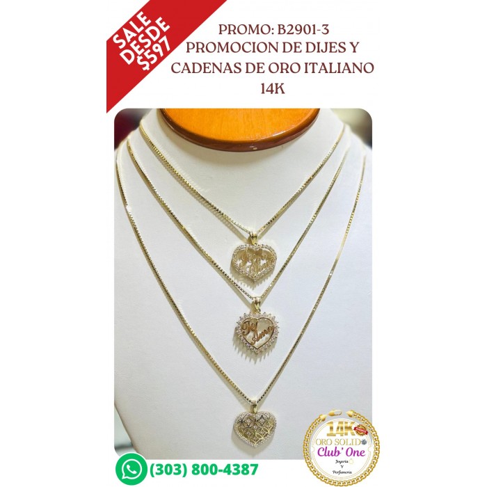 Dijes y Cadenas de Oro Italiano 14k en Promoción B29013