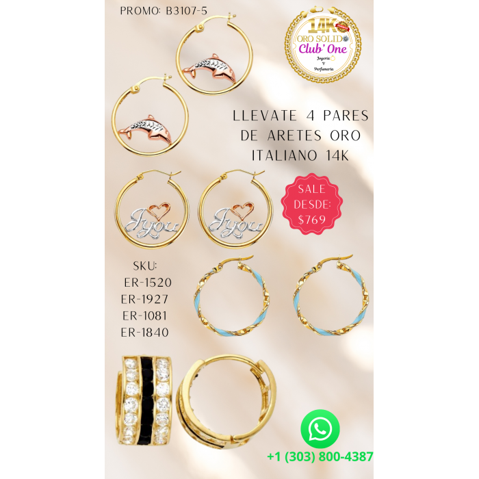 Oferta Exclusiva 4 Pares de Aretes de Oro 14k Italiano B3107-5
