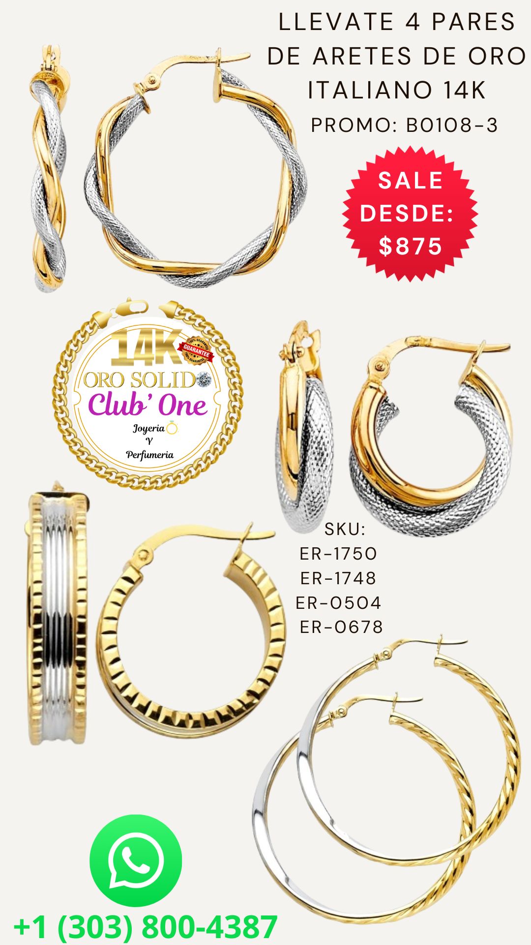 Oferta Limitada 4 Pares de Aretes de Oro 14k