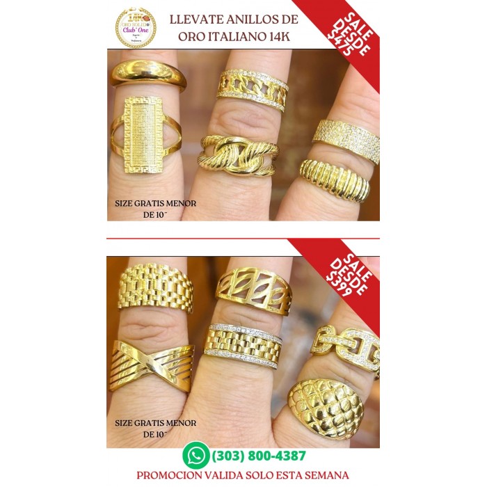 Ofertas Especiales en Anillos de Oro Italiano 14k Lujo al Mejor Precio B28013